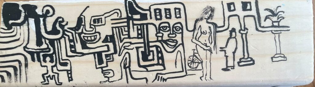 20 x 15 x 5,5 cm – ink on wood 3D – 3 sides painted