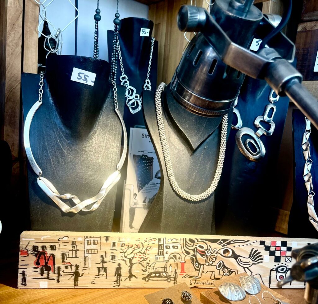The business is known by the somewhat mysterious initials of B.O.T.C. Under closer inspection it is an abbreviation of the impressive sounding company name Bos Otten Trading Company. The shop offers visitors an abundance of beautiful and exotic foreign objects, mainly from the far east. Their assortment is comprised of various collections, such as the Silvershine lamp series along with bronze sculptures, wine racks, jewellery, glass objects, folding stools, printing stamps for cloth, shell boxes, mirrors with recycled teak frames and a big but appealing Dachshund. Not forgetting the small things such as black and white painted sardines and bright red peppers. What is striking also are the four beautifully decorated metres high pillars from India. Rob says immediately these are not for sale as they are part of his private collection.